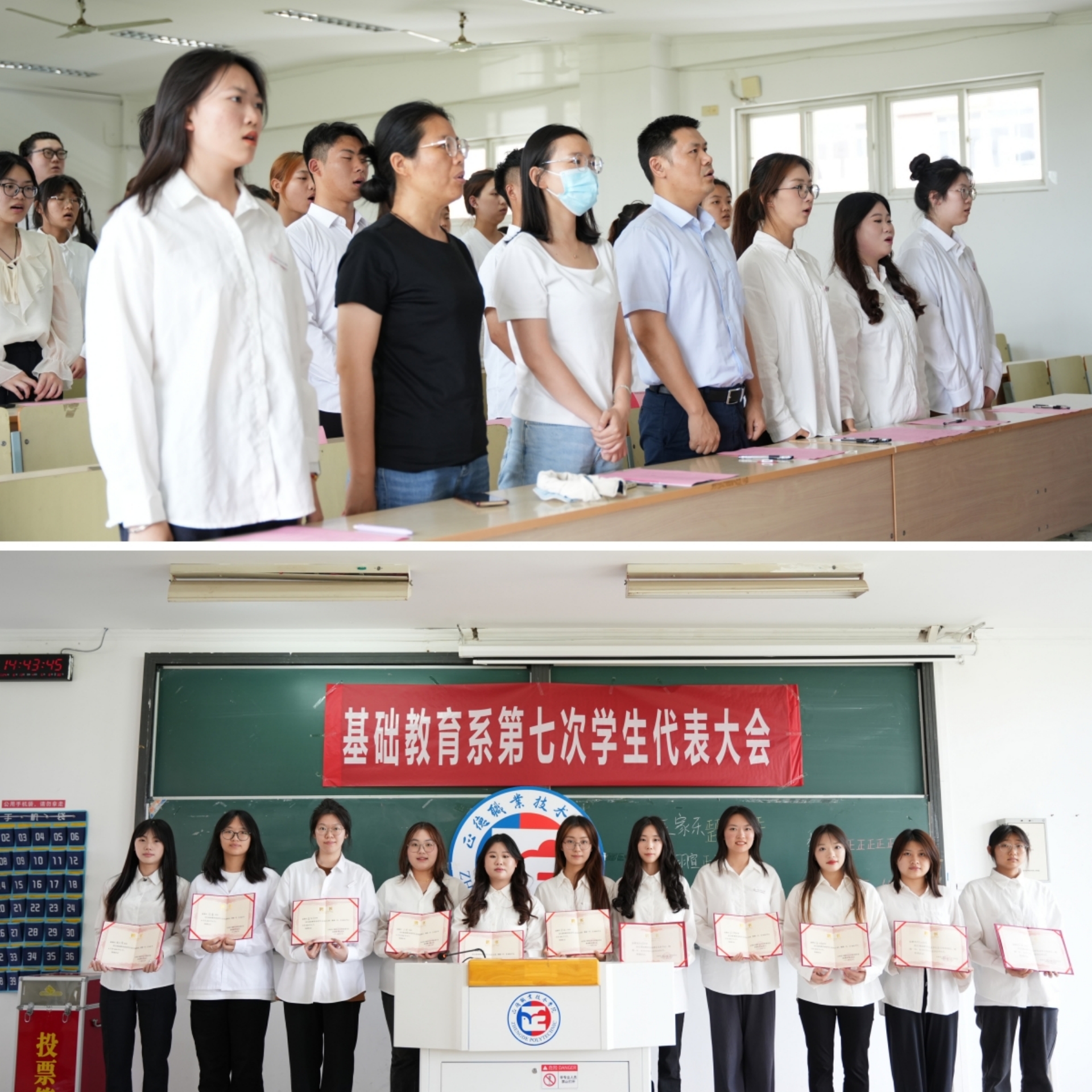 会议听取并审议了余涵心同学代表基础教育系第六届学生会作的工作报告,王家乐同学代表第七次学生代表大会筹备工作委员会作《基础教育系第七次学生代表大会提案工作报告》。选举产生王家乐、王诗婷、李洁3名同学为基础教育系新一届学生会主席团成员。