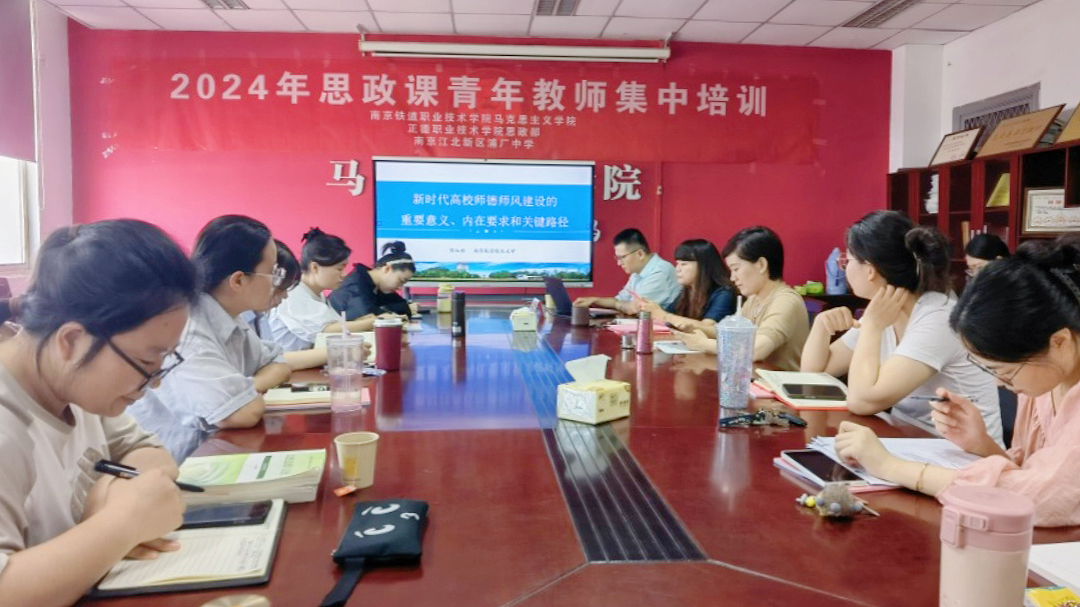 为深入贯彻落实习近平总书记关于思政课建设的重要讲话精神,推动全省民办高校思想政治理论课教学质量提升, 9月7日、8日,由南京铁道职业技术学院马克思主义学院举办的2024年思政课青年教师集中培训在行知楼A508举行,色情视频 思政教研部副主任(主持工作)李颖、教师代表叶欢、陈瑶、何巧玲共同参加。此次培训开设了丰富的理论研学课程,采取专题讲座、现场教学展示、自由讨论等方式开展。