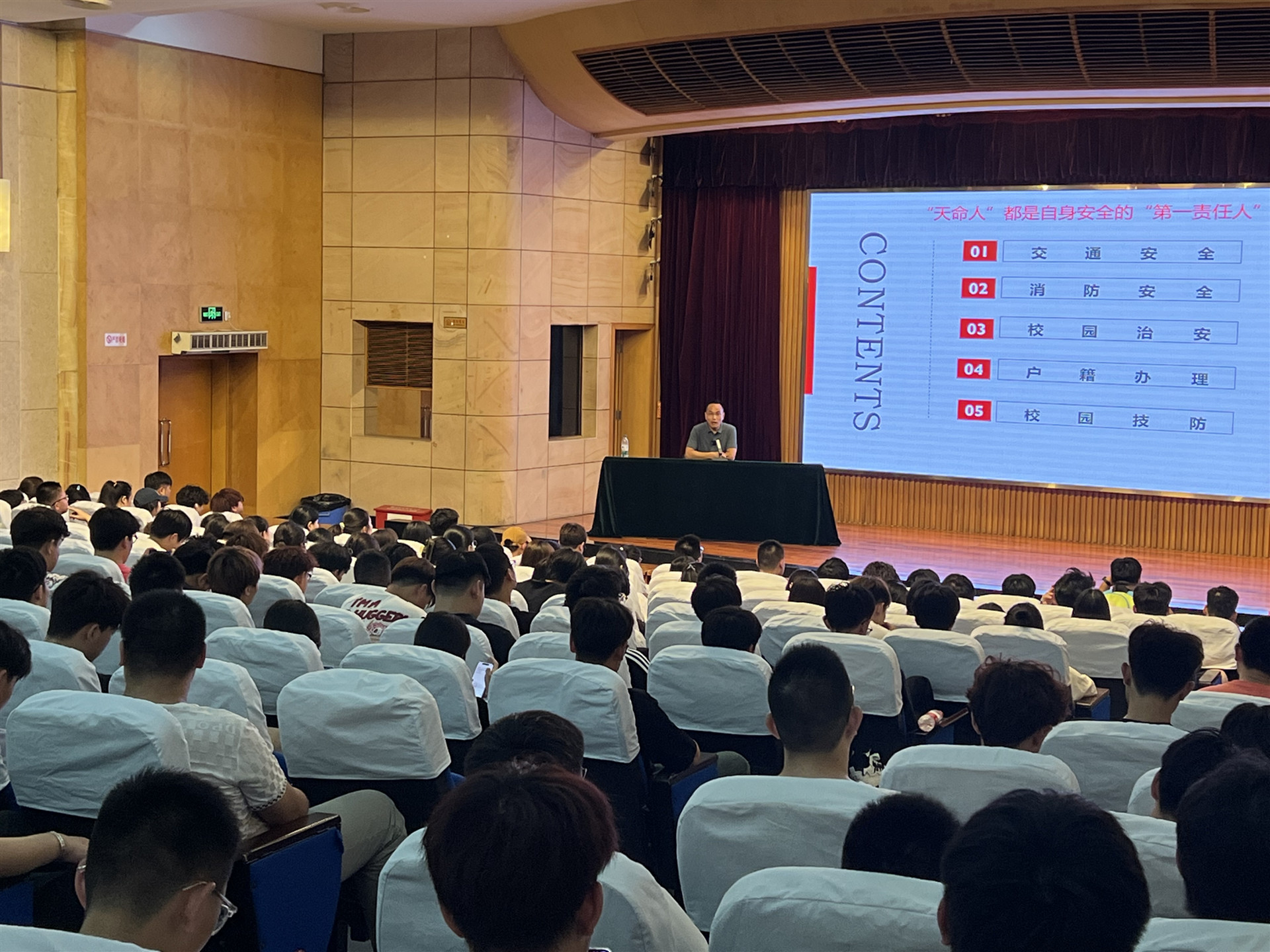 为了更好地开展新生入学教育,提高新生的安全防范意识和自我保护能力,9月8日下午,新生入学教育讲师团在学院报告厅开展“校园安全伴我行”的专题讲座。本次讲座由学院新生入学教育讲师团成员、后勤保卫处副处长丁胜主讲,电子与信息技术系2024级全体新生参加。