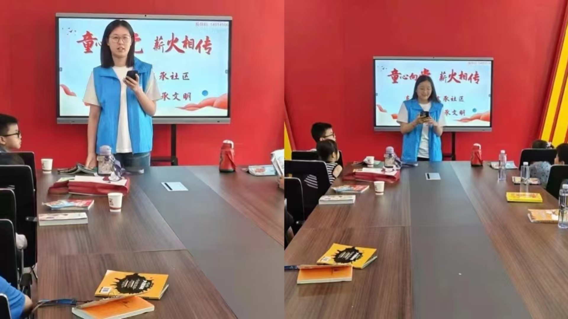 实践团队还联合社区开展儿童图书分享会,通过让小朋友多读红色书籍,了解红色故事,传承红色基因。活动中孩子们手捧经典红色书籍,共同感受革命历史的魅力。在成员们的分享和交流中,更加深入地理解了红色故事的内涵,也激发了他们对革命先烈的敬仰之情。
