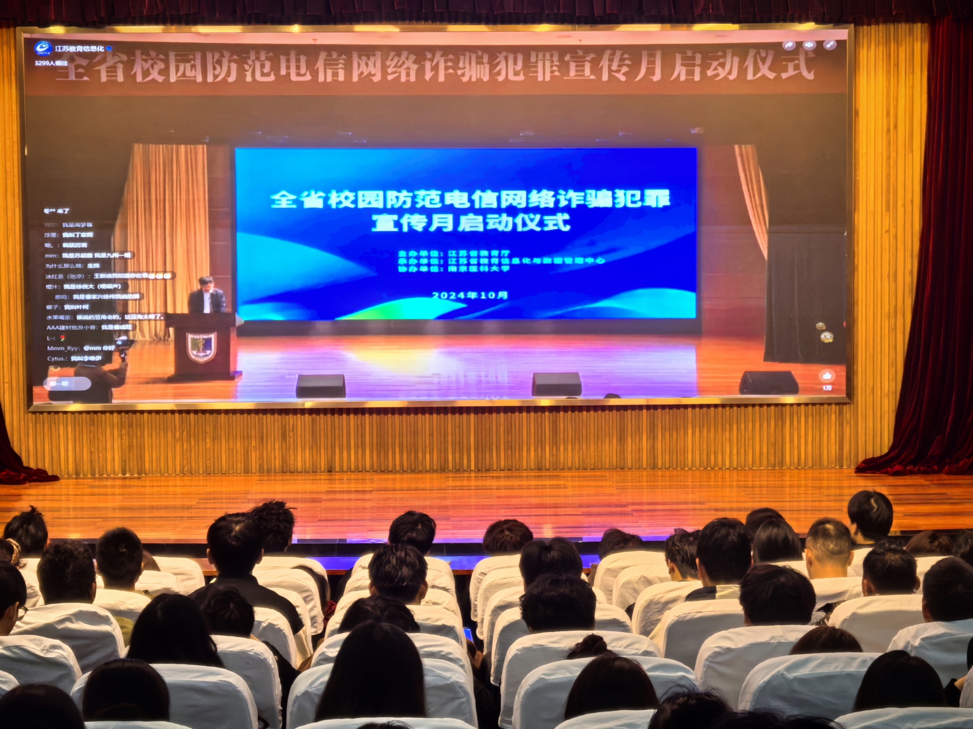 为加强校园防范电信网络诈骗犯罪宣传,增强广大师生防范意识,引导大家树立正确的网络安全观,提高自我保护能力。10月24日上午色情视频 组织学生代表在报告厅参加线上江苏省校园防范电信网络诈骗犯罪宣传月启动仪式。
