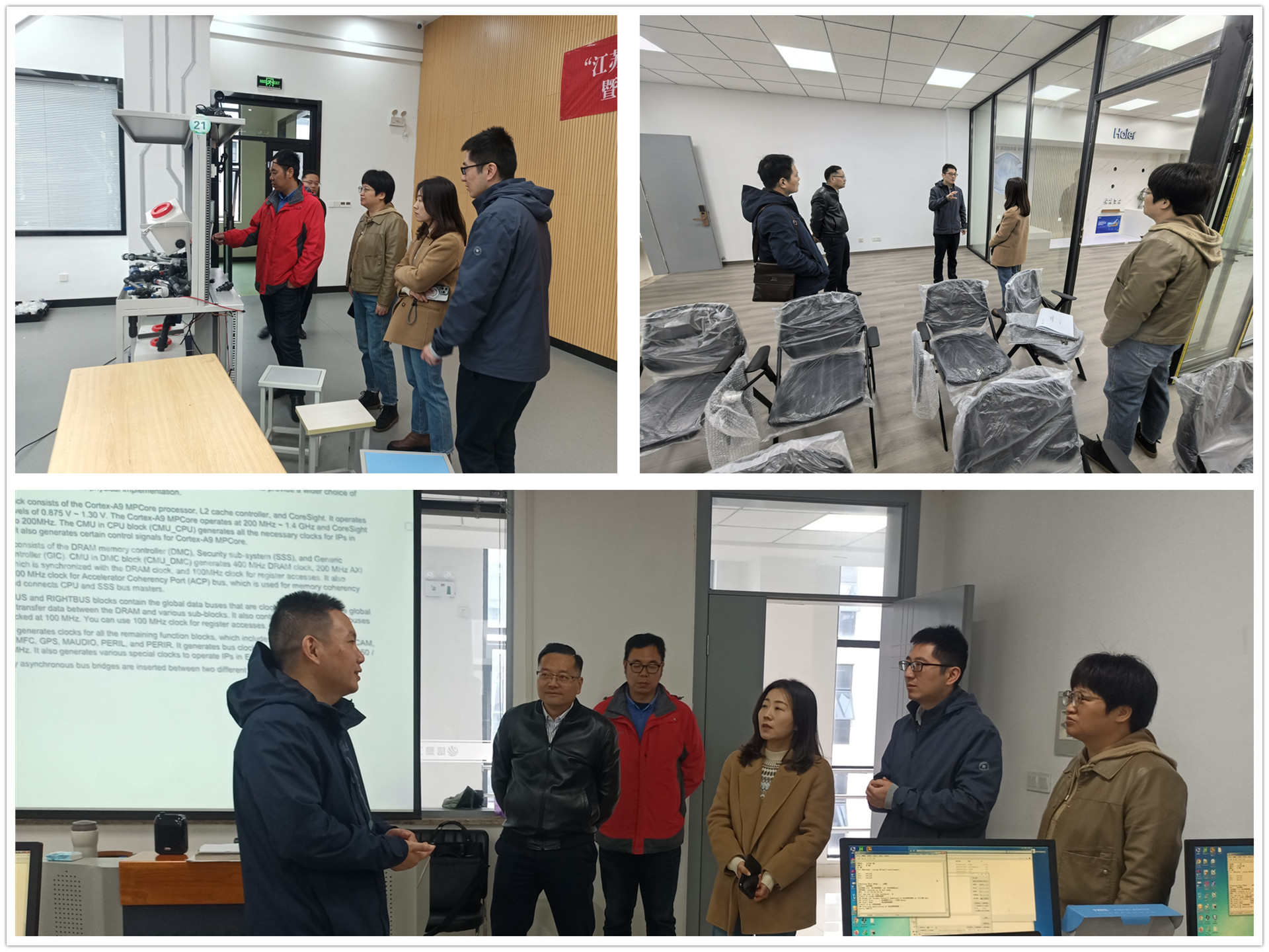 为深入推进专业建设,提升实验实训教学质量,强化学生实践创新能力培养,11月19日,电子与信息技术系主任刘佳、副主任张宝华、电子信息工程技术专业负责人戴慧及专任教师孙军辉等赴江苏农林职业技术学院信息工程学院进行调研学习。信息工程学院党总支教工第一党支部副书记崔明、信息工程学院物联网教研室专任教师仲瑶热情接待并全程陪同刘佳一行。