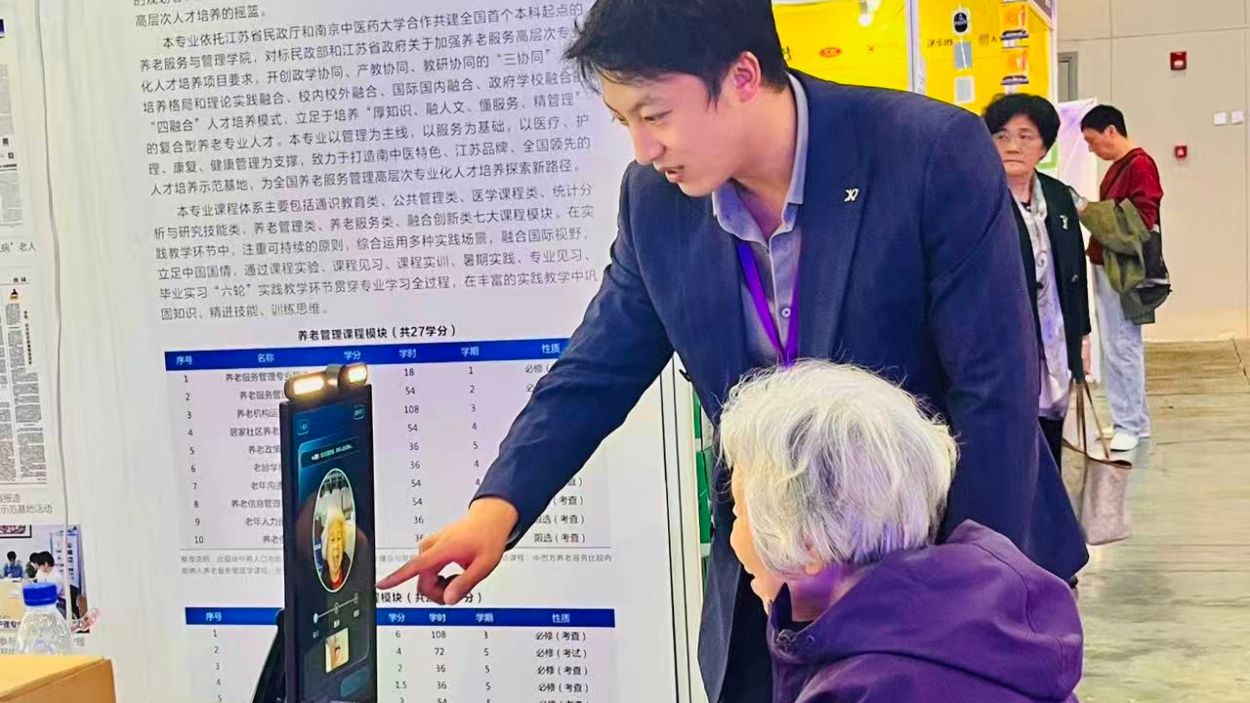 与此同时,何晓娟、王熙、黄芳三位老师结合智慧健康养老专业的发展动态,组织部分学生参加了以“重阳敬老·感知养老新未来”为主题的第十三届江苏国际养老服务博览会。在浓厚的敬老氛围中,学生们沉浸式体验了养老领域的前沿科技与行业新貌。在“智慧养老解决方案展区”,同学们亲手操作智能健康监测设备,体验AI语音交互系统在老年照护中的实际应用,切身感受科技为养老行业带来的深刻变革。走进“适老化产品用品展区”,大家亲身体验智能轮椅与助行辅具,并在模拟家居场景中感受无障碍生活带来的便利。
