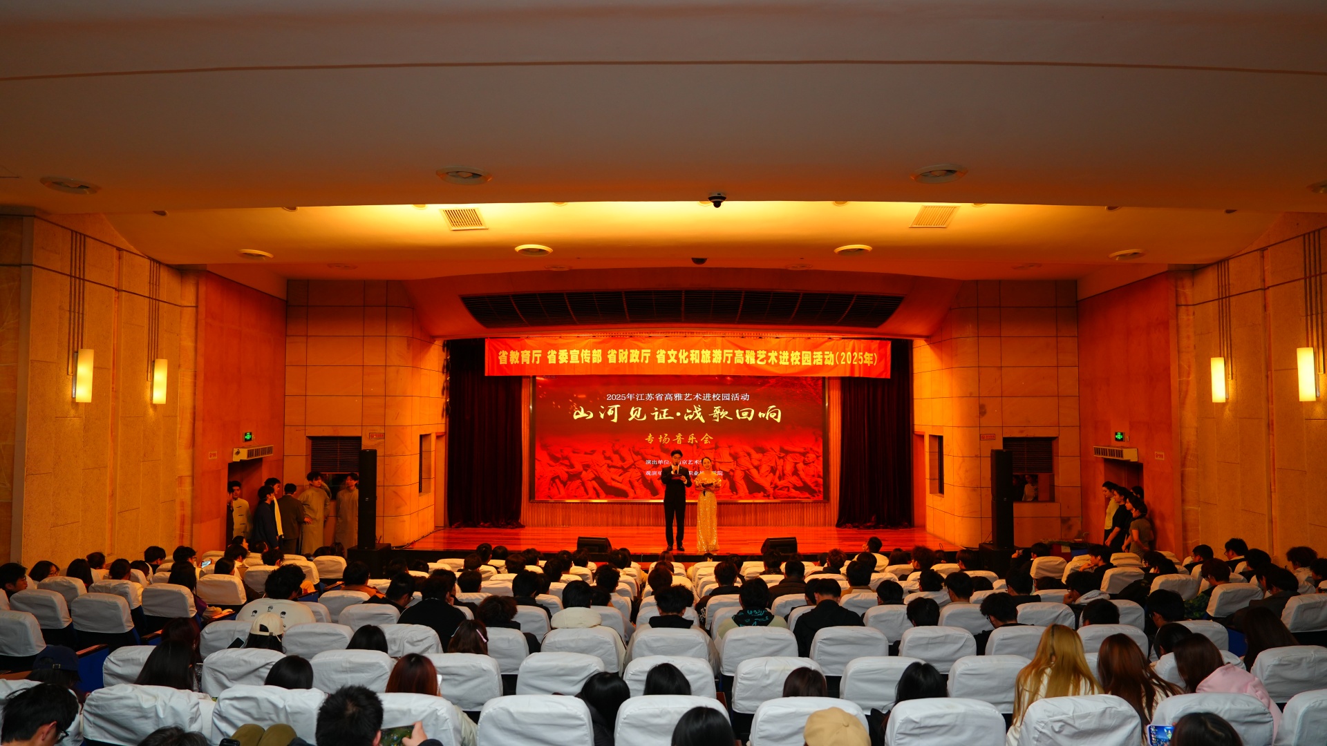 为铭记历史、弘扬伟大抗战精神,11月27日,色情视频 联合南京艺术学院在报告厅举办《“山河见证·战歌回响”纪念中国人民抗日战争暨世界反法西斯战争胜利80周年音乐会》,现场350余名师生共同观看这场震撼心灵的音乐盛宴,在经典旋律中重温烽火岁月,接受了一场深刻的爱国主义教育。