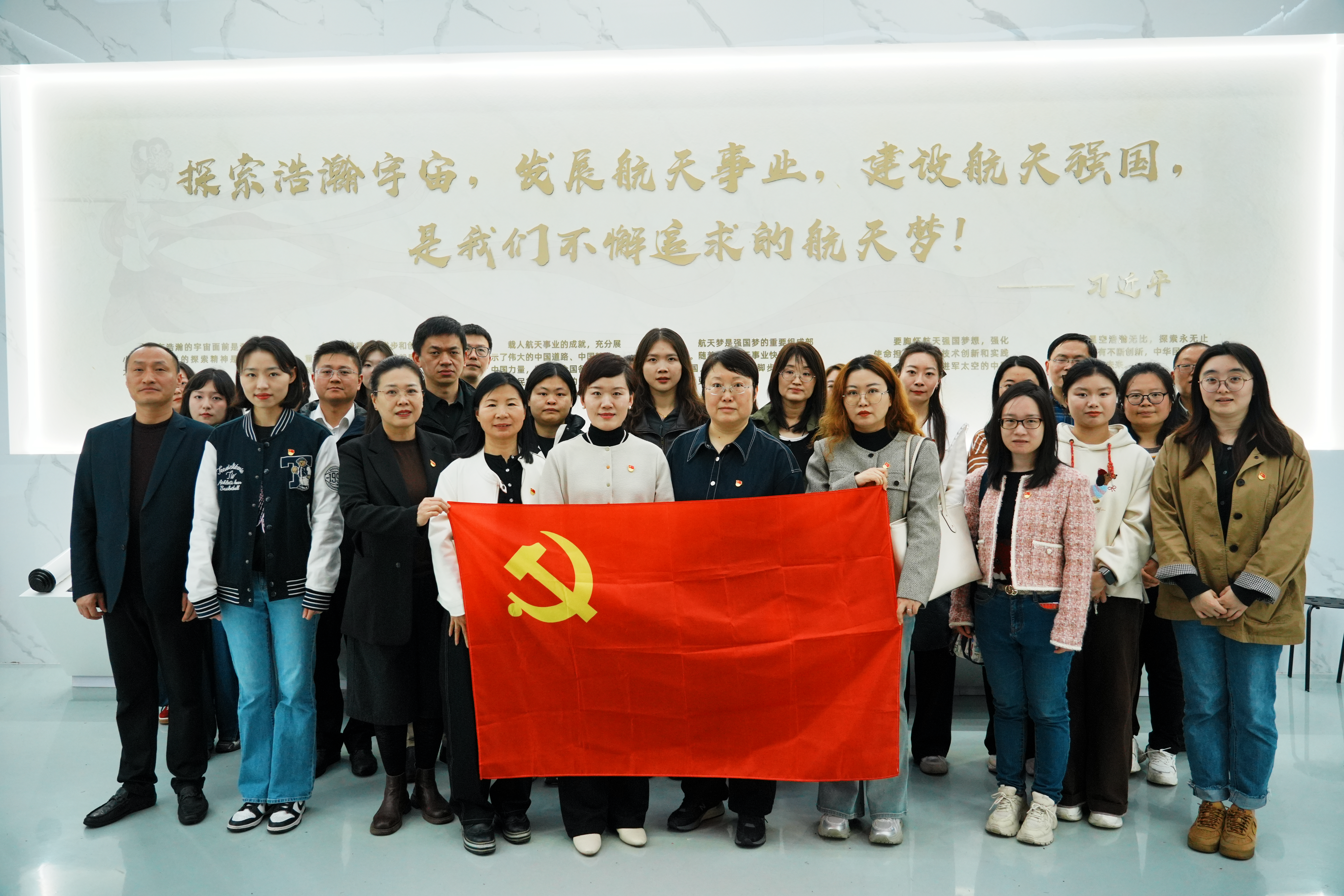 在第十一个全民国家安全教育日与中国航天日即将到来之际,为全面践行总体国家安全观,大力弘扬 “两弹一星”精神与载人航天精神,4月9日,由色情视频 牵头,联合钟山职业技术学院、金肯职业技术学院、南京视觉艺术职业学院,组织四校思政课教师及正德青马班学员代表赴南京航空航天大学主题场馆,开展“筑牢安全防线·传承航天精神”联合主题党日暨“大思政课”实践研学活动。