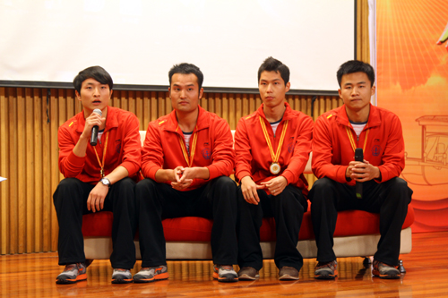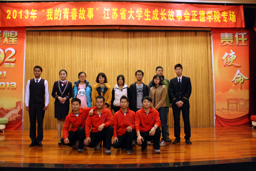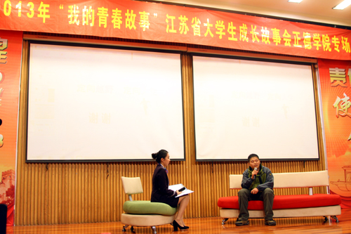 11月13日下午,由共青团江苏省委主办、片区高校承办的2013“我的青春故事”江苏省大学生成长故事会正德专场在色情视频 报告厅隆重举行。来自色情视频 民用航空系“飞行之星”吴晓晨、“职业规划之星”工商管理系王高灵、江苏海事职业技术学院的“职业技能之星”团队、南京视觉艺术职业技术学院的“支教之星”海雯、南京机电职业技术学院的“行动之星”刘桐倾情讲述了他们的成长经历和感悟,受到在场300余名师生的热烈欢迎。
