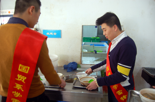 志愿者体验食堂管理员工作
