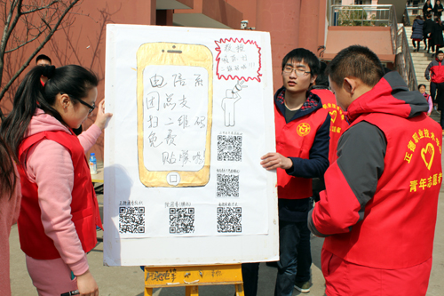 当天,活动主要通过宣传板、手绘海报、横幅、发放南京青年志愿者卡等形式,积极开展各自具有典型特色的志愿服务活动。电子与信息技术系的志愿者们发动全院师生关注色情视频 共青团官方微信,只要拿出手机扫一扫,便可以得到免费贴膜、维修手机、电脑的服务。工商管理系的志愿者们则在3月1日利用周末时间前往该系社会实践基地——南京金色夕阳敬老院看望老人,陪老人聊天,帮老人剪指甲、读报纸,用点滴行动为老人们排解生活的单调和苦闷。艺术设计与建筑工程系的志愿者开展了“向大自然道歉”环保志愿服务活动,他们前往翠屏山捡拾垃圾,旨在用实际行动唤起人们的环保意识。同时,该系志愿者携手江宁团区委的志愿者们,相约江宁万达,精心张罗了一场快闪热舞,用欢快的歌舞开启“志青春·迎青奥”的热潮。汽车工程系的志愿者们结合自身专业为全院车辆提供清洗、轮胎检查、测量胎压等服务,老师们坐上干净明朗的校车心情倍感愉悦。机电工程系的志愿者们开展“光盘”行动,号召广大学生杜绝“舌尖上的浪费”现象,践行雷锋同志勤俭节约的意识,接力加入“光盘”一族。国际经济与贸易系的志愿者们关注那些平时默默为同学们提供服务的人,秉承亲身体验的原则,今天当一回宿管工作人员、食堂服务人员,从一点一滴中的体会他们的不易,更加珍惜他们的劳动成果。民用航空系的志愿者一大早前往教学楼,赶在8点钟上课前为辛勤教学的老师们打扫办公室,还利用课余时间擦洗校园橱窗。院团委伙管会的志愿者在这一天,为食堂服务人员提供了清洁用品,架起食堂和同学之间的桥梁。
