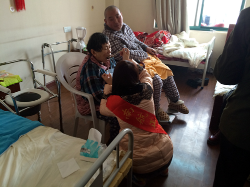 志愿者给老人喂饭