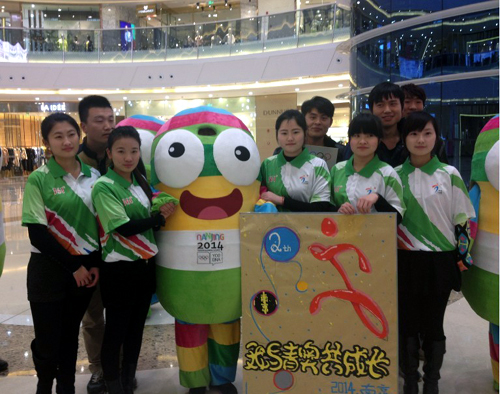 志愿者用“快闪”方式迎青奥