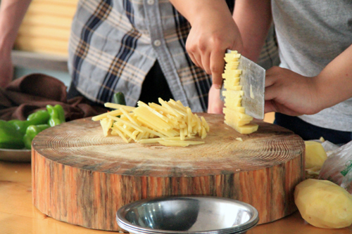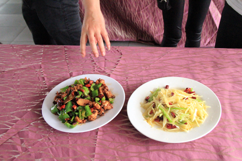 13组选手抽签分为四队,分别制作一冷一热两道菜色。比赛一开始,精心准备的选手们便开始有条不紊地忙碌起来,洗、切、剁、拍,刀工不凡,引得观赛同学纷纷赞叹。厨房锅重火大与家庭中使用的灶具有所不同,炒制过程中,选手们在厨师的帮助下快速上手。菜肴中凉拌黄瓜、干煸鸡屡次亮相,也有水果拔丝、小笼豆腐、蒜爆鱼等高水平的美味。熟练的手艺、丰富的想象、大胆的创意都给在场观众留下了深刻的印象。