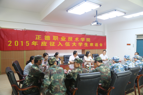 院党委书记、副院长左彤云向即将携笔从戎的同学表示热烈祝贺,并就参军报国和读书学习两者之间的有机结合提出了自己的看法。她说,部队是一个大熔炉,更是一所大学校,希望大家既要刻苦训练、努力成才,也要在训练间隙进一步加强学习,提高素质,在军营中把训练和学习相结合,完成使命后回正德学院继续完成学业。