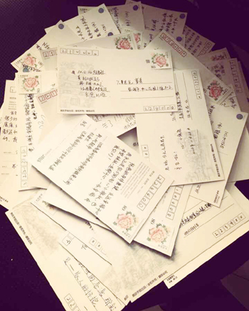 在活动现场,社团同学们对来往师生热心宣传活动内容,拿出准备好的心形贴,请同学们写下感恩话语,贴在感恩展板上;活动组织者还提供南京城市文化印象背景的明信片,请同学们向父母老师、亲人朋友们亲笔书写自己的感恩之情,并收集好,统一帮助代邮。