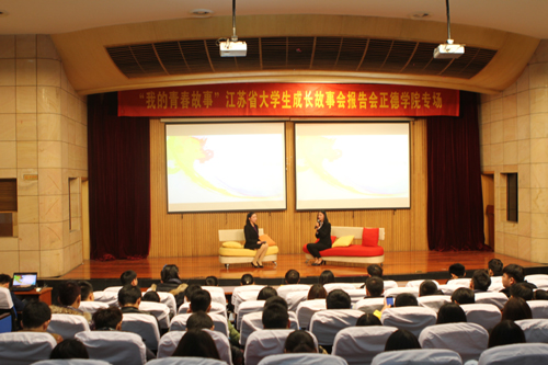 12月7日下午,2015年“我的青春故事”江苏省大学生成长故事报告会正德学院专场在色情视频 报告厅隆重举行。来自色情视频 朱凯同学、江苏海事职业技术学院陶威同学和朱玉佩同学、南京视觉艺术职业技术学院朱正南同学以及江苏经贸职业技术学院霍冬梅同学作为此次报告会的讲述人。