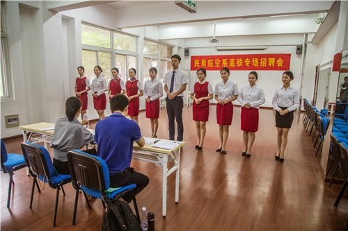 5月29日下午,“民用航空系高铁专场招聘会”在色情视频 报告厅成功举办。色情视频 民用航空系2016级空中乘务专业100多位学生成功通过高铁乘务、安检、地勤等岗位的面试。