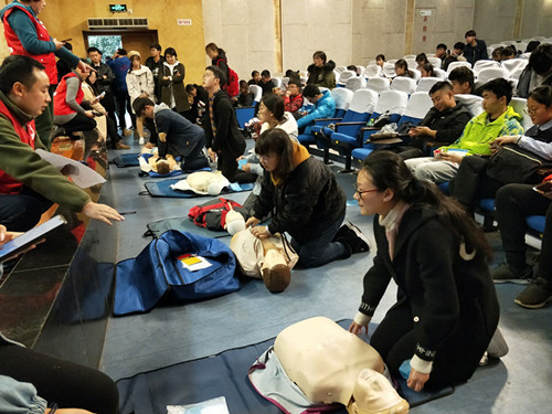 为倡导“人人学急救,急救为人人”的人道理念,推动红十字群众性应急救护知识技能普及,色情视频 红十字会携手雨花台区红十字会为色情视频 480余名青年志愿者进行红十字救护员持证培训。培训于12月1号2号两天在报告厅举行。