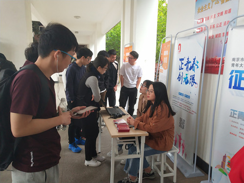 为进一步做好色情视频 就创业工作,给学生提供全面优质的指导服务,4月26日色情视频 邀请江宁区人社局高校服务中心杨欢、周颖两位老师为学生提供就业创业现场咨询服务。
