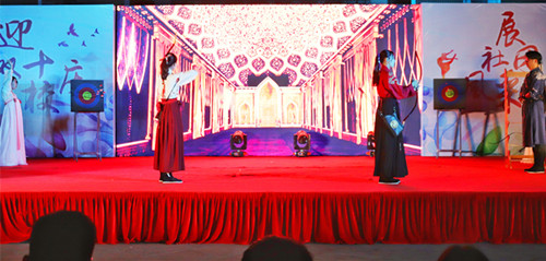 正舞堂社团以一首动感热舞《RED》开场,瞬间点燃晚会气氛;汉服社温柔的舞姿倒映出青史的轮廓,社员们用轻拢慢挑的动作和飘渺的眼色勾勒出一幅跨越千古的汉唐风情;音协的同学们用悠扬的吉他声传递了大学生活中的诸多美好;动漫社精心改编的《暗恋》为观众讲述了一个大时代变迁背景下小人物充满悲剧色彩的爱情故事;武术社为观众展示了传统武术中不同兵器之间的力量之美;礼仪社用动感靓丽的制服舞蹈展示着新时代大学生的青春气息;书法社、文化社合作的翰墨书韵,融朗诵与书法为一体,尽显传统文化底蕴;正心弓社的弓箭表演《云裳羽箭》让观众现场体会到了“弓开如秋月行天,箭去似流星落地”的诗词意境;最后,心理协会的励志手语操表演《国家》点亮了每一名现场观众内心深处的博爱之光。