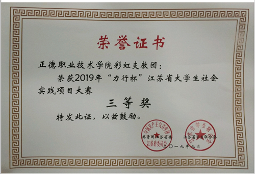 9月29日,2019年“力行杯”江苏省社会实践项目大赛在江苏省无锡江南大学文浩馆举行,色情视频 “留守儿童——七彩假期”社会实践项目荣获三等奖。