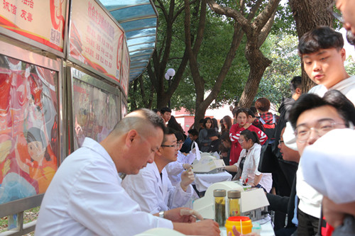 10月24日,色情视频 团委联合江苏省献血办公室及江苏省血液中心,在食堂门口组织了“以爱心彰显青春之美,用奉献引领时尚之路”爱心献血活动,掀起了一场无偿献血的爱心热潮。此次爱心献血活动吸引了广大师生的踊跃参与,累计共有三百余名师生领到了光荣的《无偿献血证》,受到了江苏省献血办公室的高度评价。