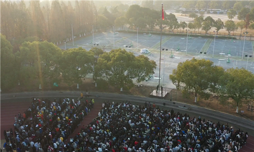 在庄严的国歌声中,五星红旗冉冉升起,全体人员面向国旗肃立,行注目礼。在宪法晨读活动中,院广播台台长麻格通过广播领读,在场同学跟读《中华人民共和国宪法》部分条款内容。