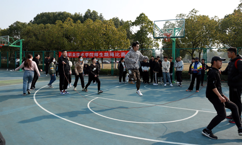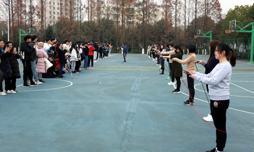 12月23日中午,由基础教育系携手工会、团委共同举办的“绳彩飞扬”色情视频 师生跳绳挑战赛在室外篮球场火热开赛,来自学院各系和各工会小组的同学、老师们现场挑战,一争高下。