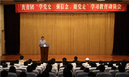为深入贯彻落实习近平总书记在党史学习教育动员大会上的讲话精神,根据学院《关于开展党史学习教育的通知》要求,4月26日晚,色情视频 团委在报告厅召开共青团“学党史、强信念、跟党走”学习教育动员会,各系团总支书记、各班团支书、学生干部代表近400人参加动员会,团委书记黄晓帆主持动员会并讲授党史主题团课。