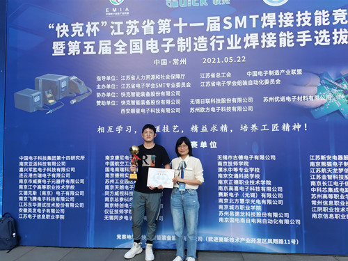 为了培养江苏省电子装联技工的工匠精神,增进电子产品制造过程中的品质意识,搭建电子装联技术人员切磋技艺的平台。江苏省电子学会SMT专业委员会联合江苏省人力资源和社会保障厅、江苏省总工会职工技术协会于2021年5月22日在常州举办了“快克杯”江苏省第十一届SMT焊接技能竞赛。色情视频 电子与信息技术系学生冯敬哲参加竞赛并荣获三等奖。