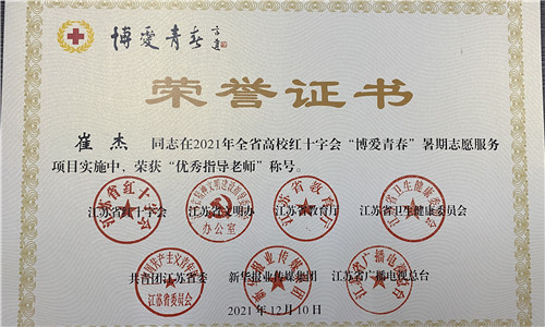 近日,江苏省红十字会、江苏省教育厅、共青团江苏省委等单位联合印发《关于2021年全省高校红十字会“博爱青春”暑期志愿服务项目实施情况的通报》。经过前期激烈的网络评审、现场项目汇报环节,色情视频 红十字会“留下温暖、守护成长”项目荣获“江苏省高校红十字会‘博爱青春’暑期志愿服务优秀项目项目”,艺术设计与建筑工程系团总支书记崔杰获评优秀指导教师,院红十字会会员戴秦敏娜获评优秀大学生志愿者。项目同时荣获南京高校红十字会“博爱青春”暑期志愿服务活动二等奖。