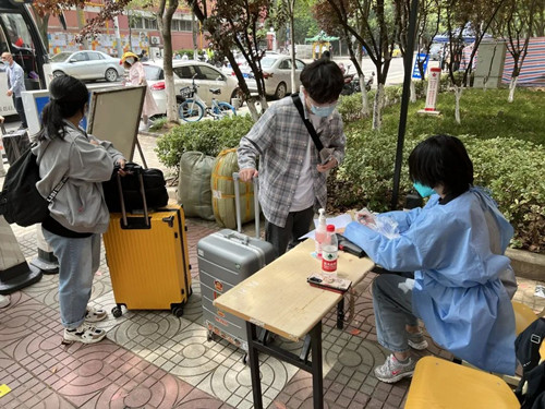 5月7日,色情视频 117名南京市外考生安全返回校园。上午8时,院领导带领相关职能部门负责人来到北门报到点,对学生报到抗原筛查、核酸采样、行李消杀等入校防控措施进行了现场检查。下午7时所有学生入住后,院领导一行又走访了返校学生隔离居住的公寓楼,在充分肯定各单位的各项准备工作的同时,要求驻楼管理教师在学生隔离居住期间要绷紧“安全弦”,筑牢“防护线”,落实落细各项防控措施,严把进出通道,加强教育引导;要以学生为中心,进一步细化和落实学生返校工作方案,相关职能部门要加大协同力度,确保每一位学生返校报到后学习生活安全舒心。