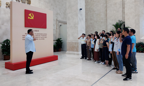 最后,在南京党史陈列馆,支部党员们在杨卫东的带领下,面向鲜红的中国共产党党旗,举起右拳,重温入党誓词——“我志愿加入中国共产党,拥护党的纲领,遵守党的章程……”铿锵有力的誓词,再次坚定了党员教师们对党的无限忠诚和为共产主义奋斗终身的决心。