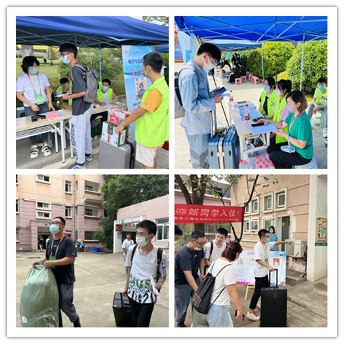 报到当天,电信系主任王高山、党支部书记赵欣深入迎新工作一线,了解迎新具体情况,指导相关工作的顺利开展,对新生寄予期望、赠与关怀。全体迎新志愿者忙碌地奔波在校园的各个角落,用饱满的热情为广大新生提供细致周到的入学服务。