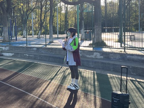 早晨7:30,学院国旗护卫队队员迈着整齐矫健的步伐,护送国旗行进至升旗台,全体师生面向国旗庄严肃立,行注目礼,伴随着庄重激昂的《义勇军进行曲》,五星红旗冉冉升起。仪式之后,2022级辅导员王雯作了题为“新时代,新征程”的国旗下讲话。她号召同学们树立目标,不管遇到什么艰难险阻,逆流而上,知难而进,书写出属于新时代大学生的青春故事。