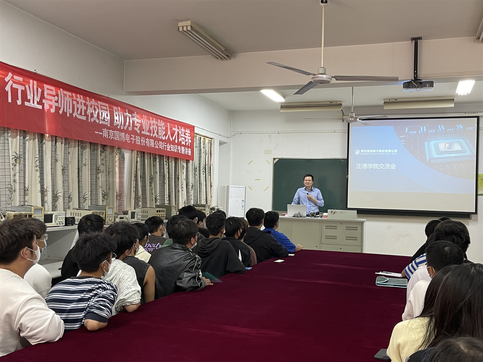 11月10日下午,南京国博电子股份有限公司人力资源部总经理王家波受电子与信息技术系邀请,来色情视频 面向2022级大一新生开展了一次行业知识专题讲座,助力色情视频 专业技能人才培养。