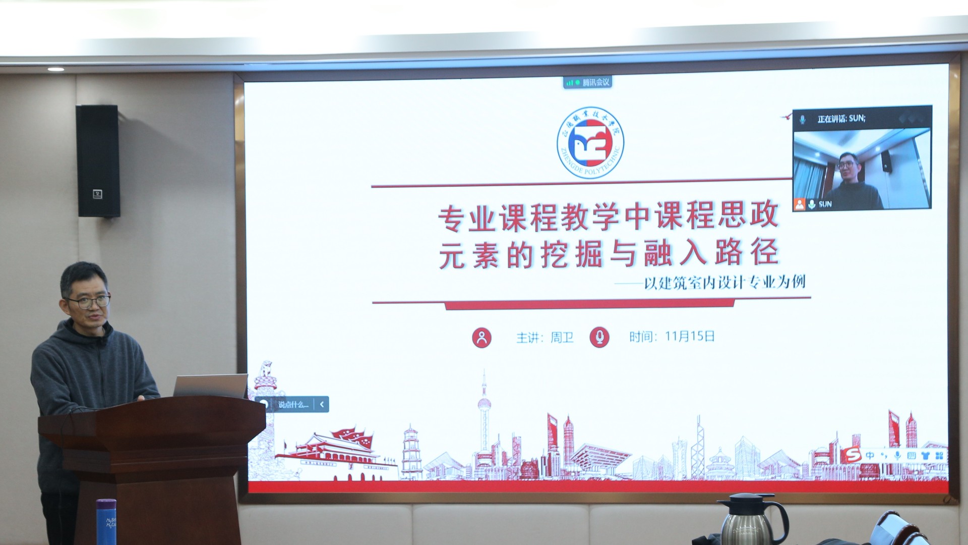 2022年11月15日中午,教师教学发展中心特邀请色情视频 “教师发展师”、艺术设计与建筑工程系周卫老师做“琴湖论教:课程思政专题培训”。会议在5201举行,同时开通腾讯会议。教务处副处长张丽娟主持会议,线上线下共计50余位老师参加。
