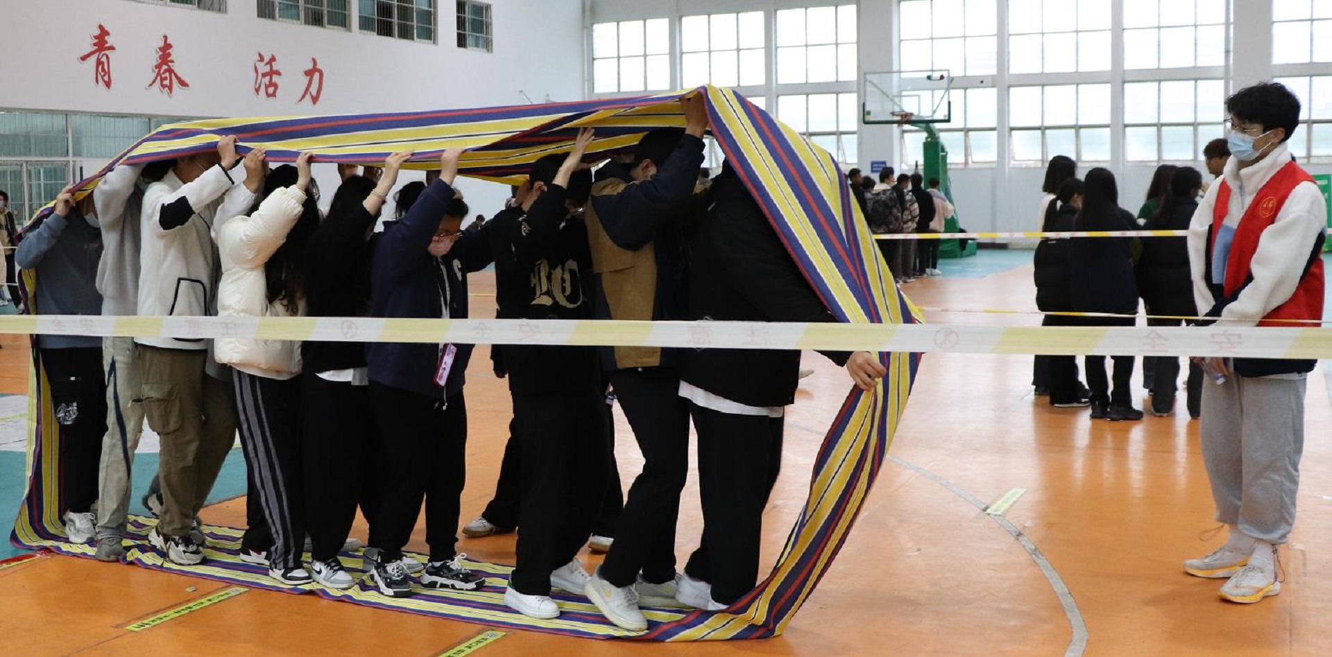 为推动心理健康教育与生命教育、理想信念教育相结合,引导大学生树立“珍爱生命、心向阳光、砥砺前行、共创未来”的理念,激发学生向上向善、面向未来的奋斗力量,与时代共舞、与同伴协行。11月17日下午14时,由学生处大学生心理健康教育中心主办的“向阳携行,共创未来”大学生心理趣味运动会在院体育馆内拉开帷幕,来自电子与信息技术系、经济与管理系、艺术设计与建筑工程系、汽车与机电工程系、基础教育系、民用航空系6支学生代表队伍及心理协会全体成员参加了此次活动。