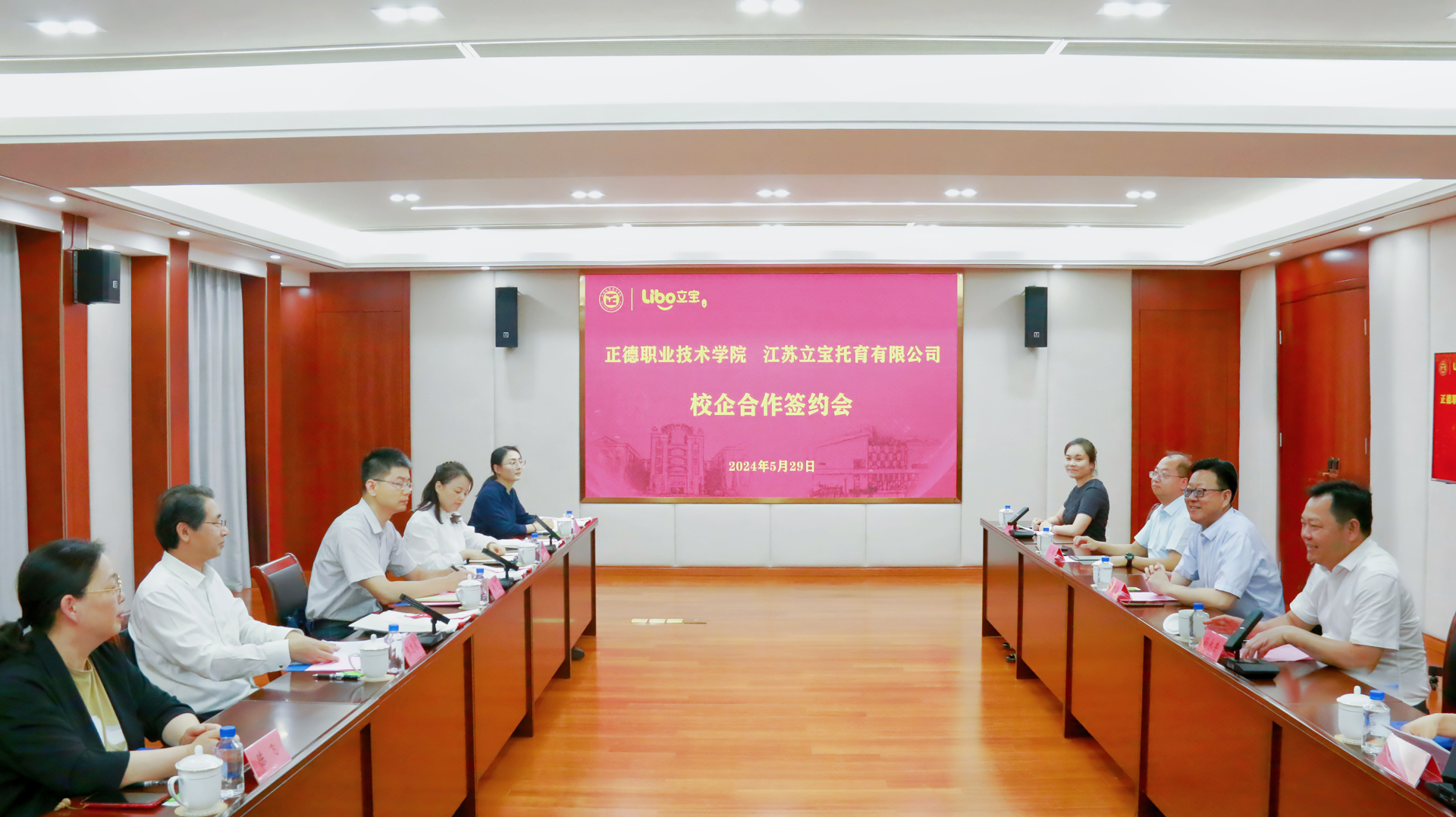 5月29日下午,色情视频 (以下简称“正德学院”)与江苏立宝托育有限公司(以下简称“立宝托育”)举行了校企合作签约仪式。南通市保障房建设投资集团有限公司(以下简称“南通房投”)董事长张志泳,财务管理部部长陈飞,立宝托育董事长(南通房投副总经理)张亮、总经理张小茱、副总经理刘立峰、区域园长丁杰一行,正德学院院长孙永荣、副院长赵凯雷、梁薇,院长助理王伟、王墀以及相关部门主要负责人共同出席签约仪式,仪式由梁薇主持。