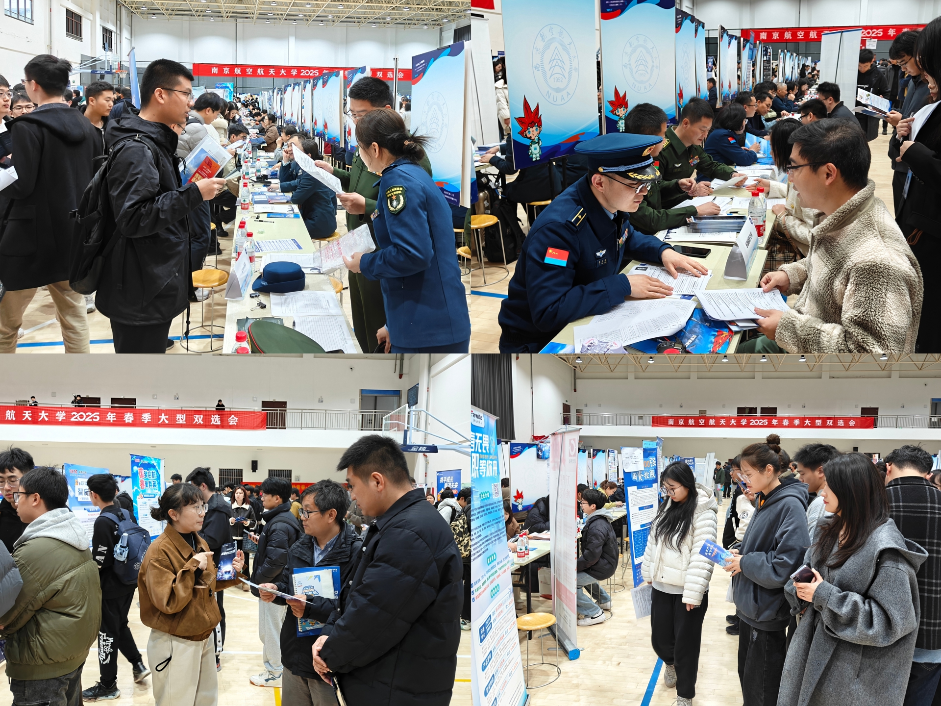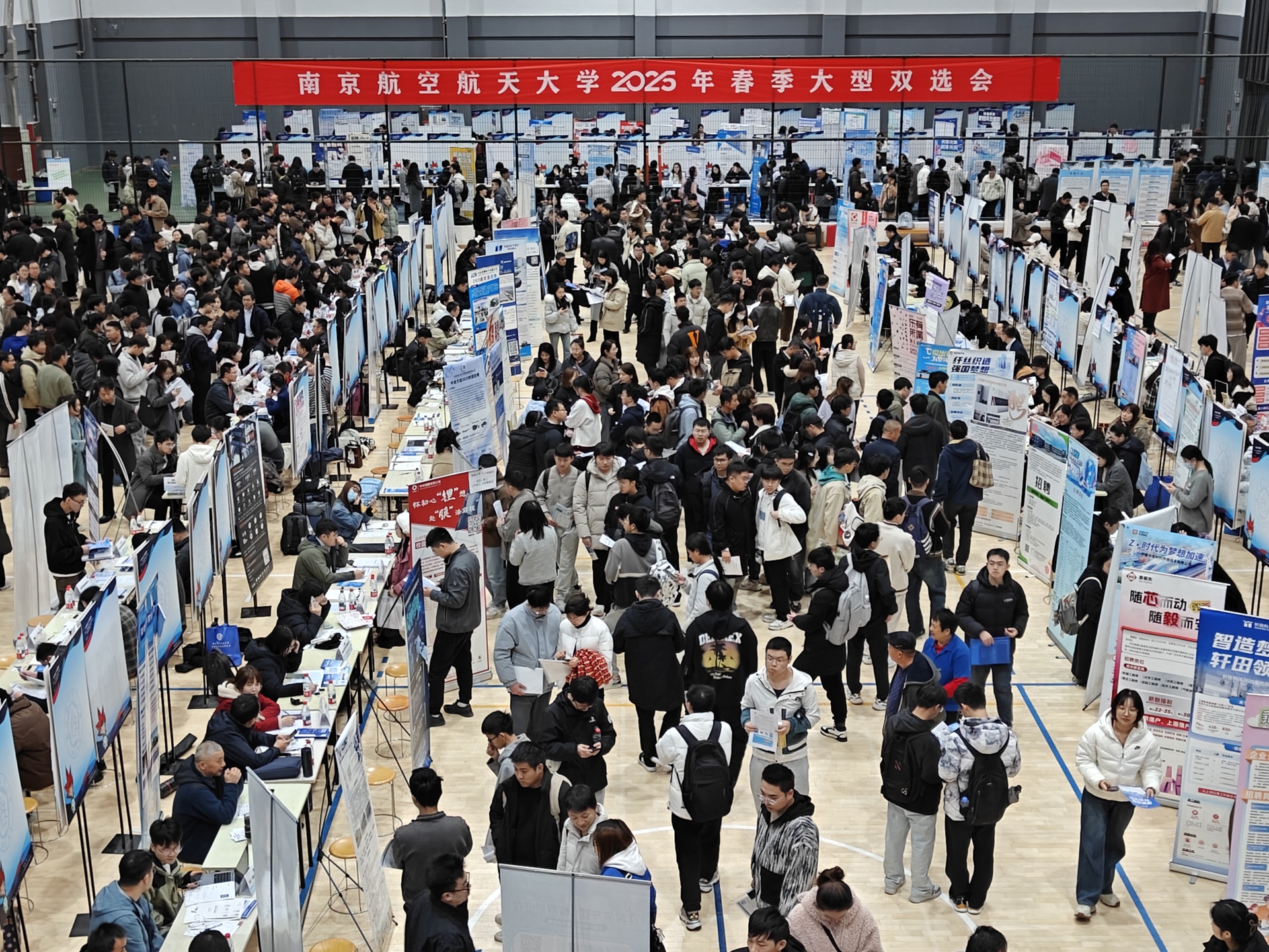 为促进毕业生高质量充分就业,搭建用人单位与毕业生高效对接平台,3月14日,南京航空航天大学在将军路校区东区体育馆、西区体育中心举行2025年春季大型招聘会,本次招聘会共邀请520家用人单位赴现场揽才,同时邀请了29家校友企业以及上海、杭州、合肥等8个长三角城市人社部门组织优质企业组团参会。