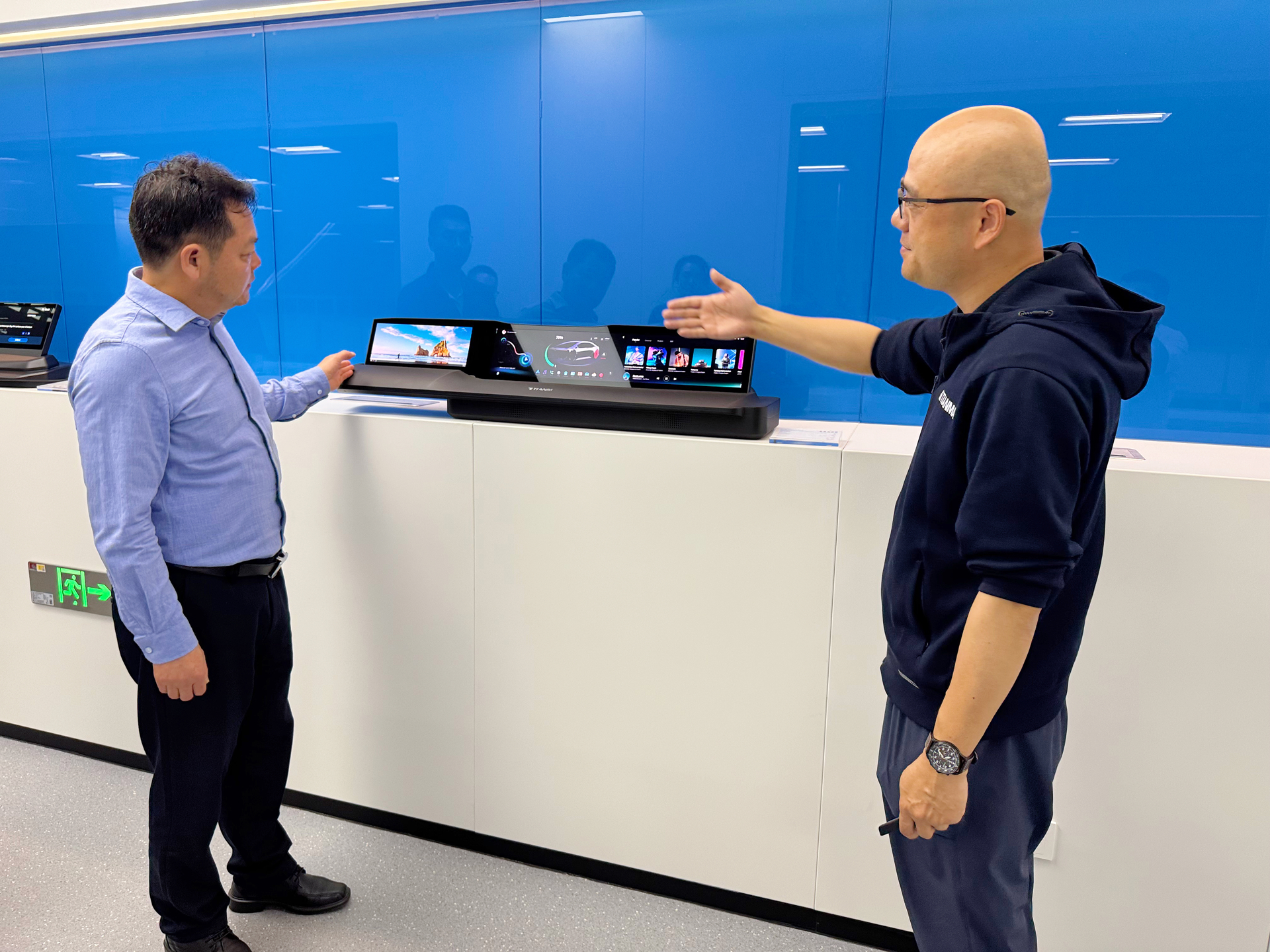 继4月11日下午,天马(芜湖)微电子有限公司(以下简称“天马(芜湖)”)领导一行来校交流后,4月18日上午,孙永荣一行受邀来到天马(芜湖)微电子有限公司开展调研,公司总经理缪周、人力资源部部长李虎、行政经理张俊、校企合作负责人荀旺等热情接待。交流会上,李虎从企业基本情况、开展的主要业务、实习生发展规划、工作环境与职工生活保障等方面介绍了天马的基本情况。