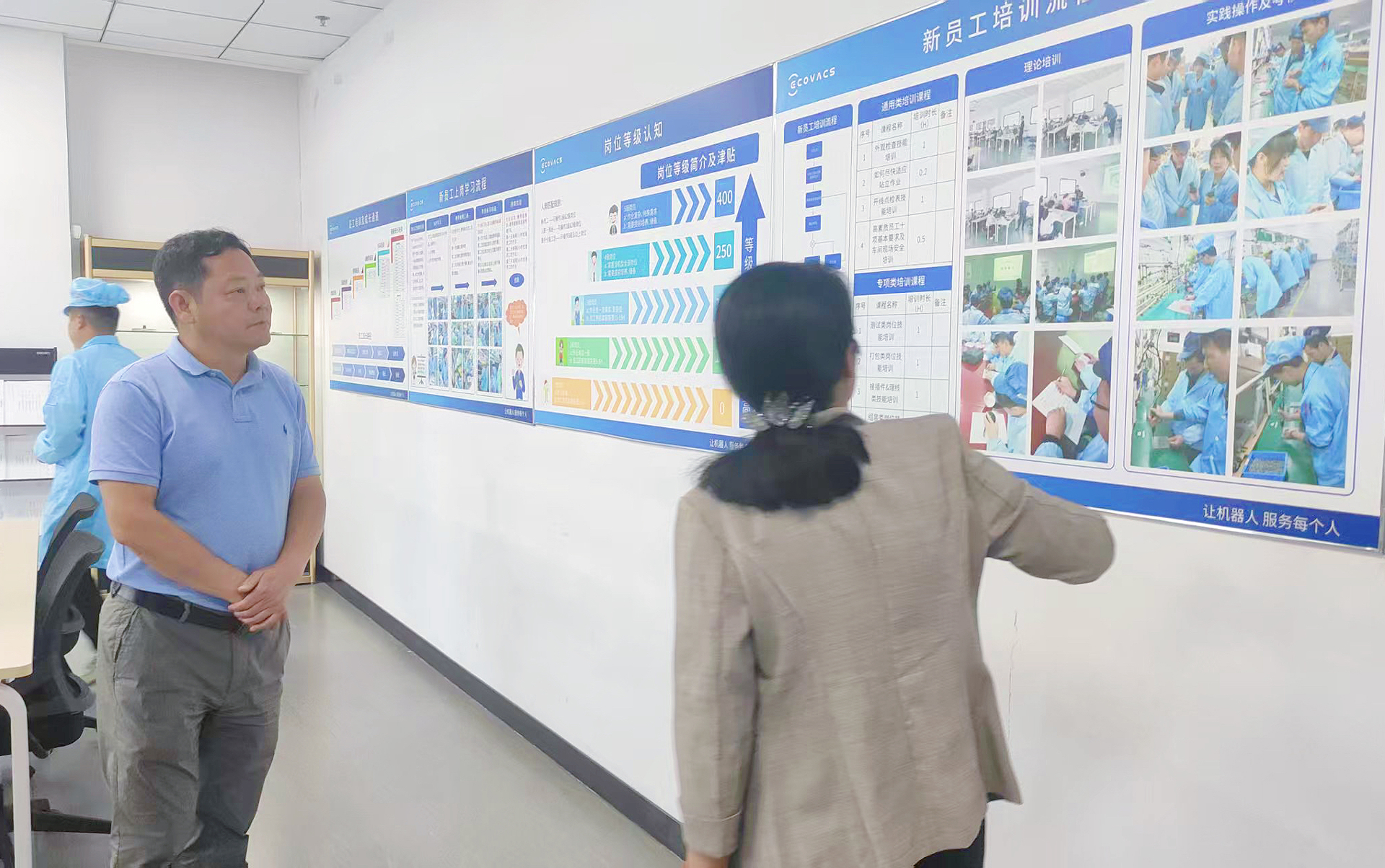 孙永荣对科沃斯的热情接待表示感谢,并对双方在产品检测实训中心共建工作中获得的进展表示认可。他表示,此次回访一方面是为了了解学生实习情况从而优化专业人才培养;另一方面,学院围绕智能装备产业链开设了包含省级高水平骨干专业——电子信息工程技术在内的多个相关专业,在专业设置上与科沃斯产业发展高度契合,双方可以围绕机器人的生产、调试、售后等方面构建深层次的合作。他强调,希望校企双方能从共建共享产品测试中心、技术服务、人才培养、高质量实习就业等多维度深层次开展合作创新,推动校企协同发展再上新台阶。