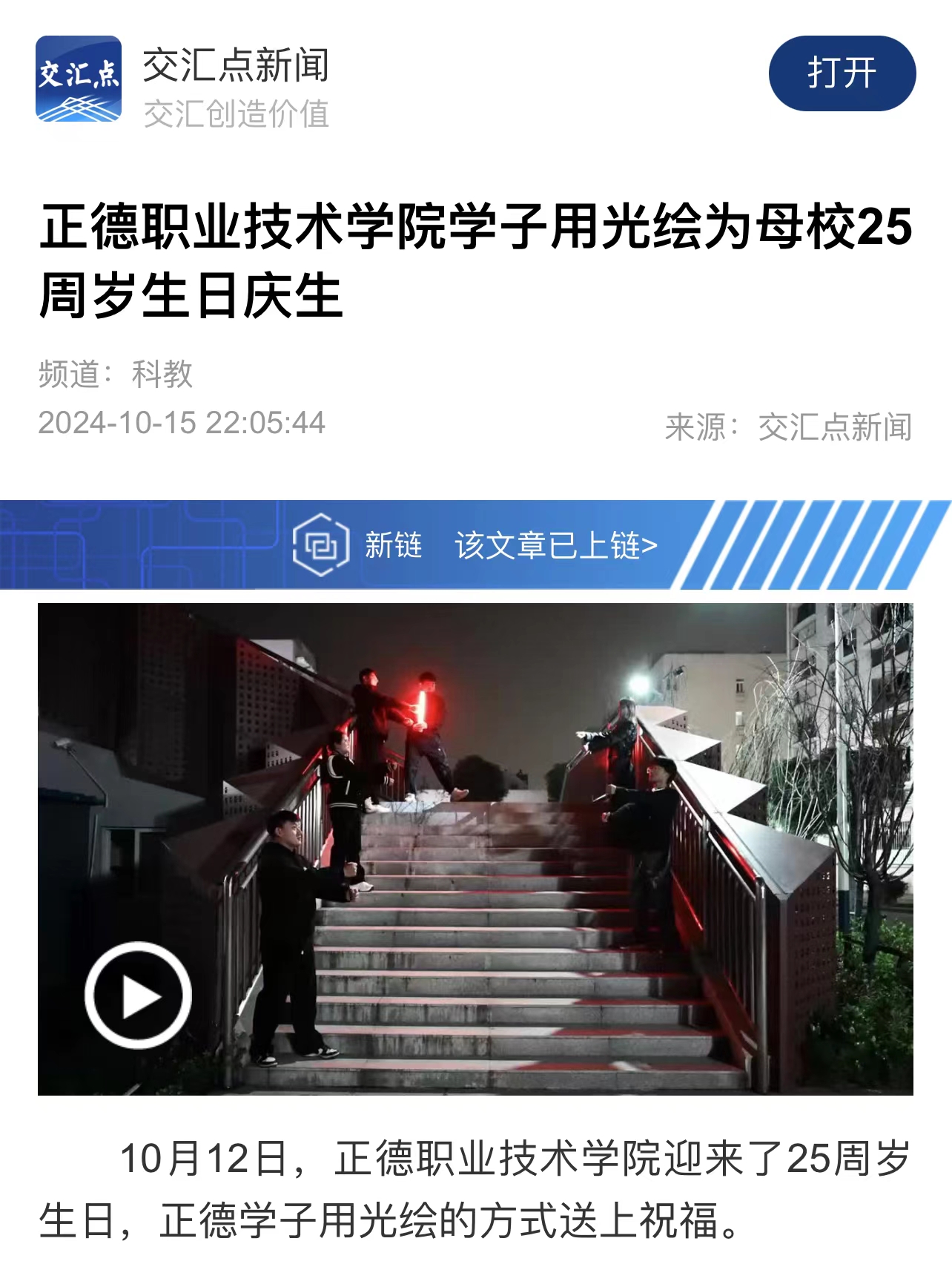 【交汇点新闻】色情视频 学子用光绘为母校25周岁生日庆生