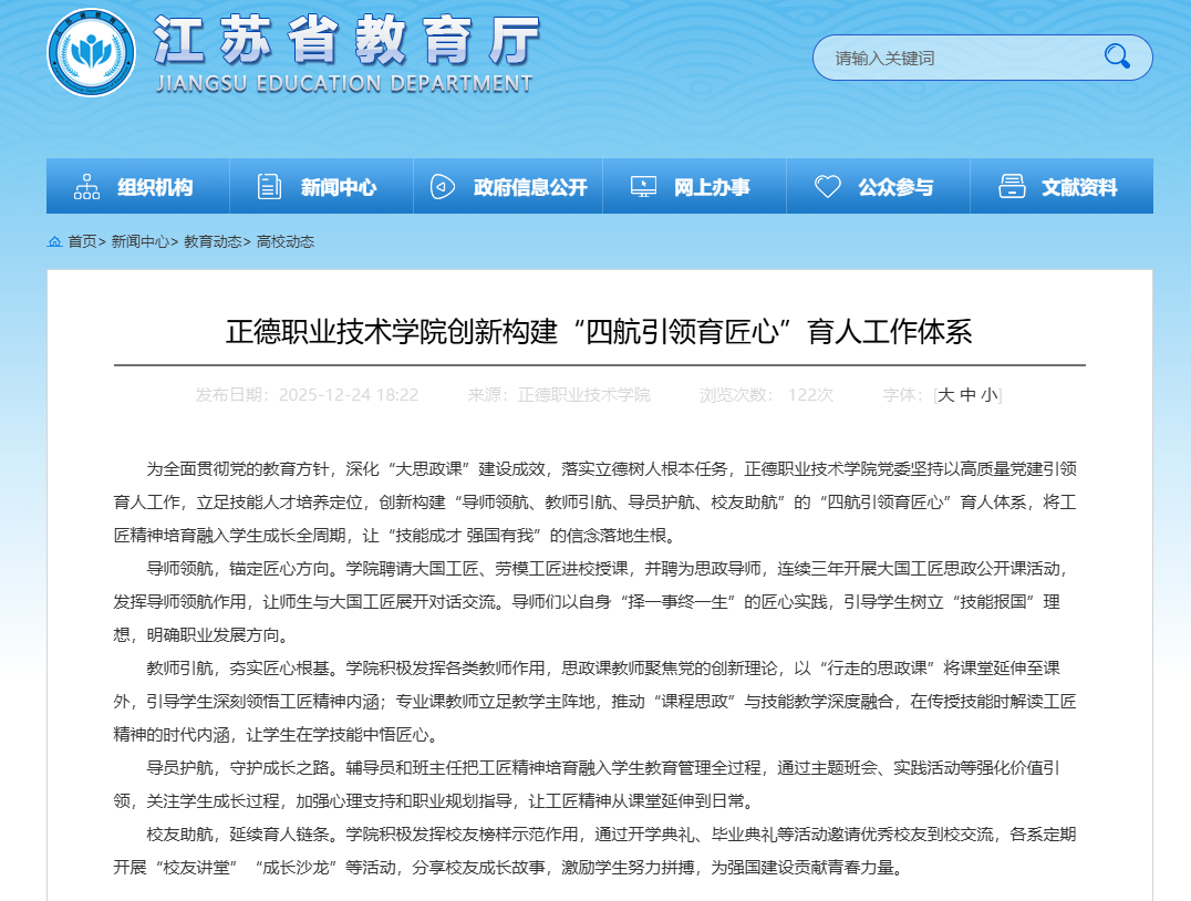 【江苏省教育厅】色情视频 创新构建“四航引领育匠心”育人工作体系